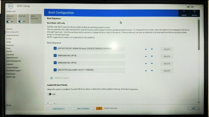 Dellのロゴ画面「Supported dell safebiOS」を表示するが、